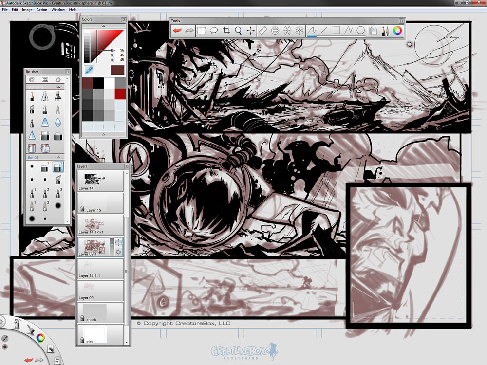 Autodesk Sketchbook Pro is one of the must have applications if you have a pressure sensitive tablet. It is also now available for iPad, iPhone and other tablet devices here.