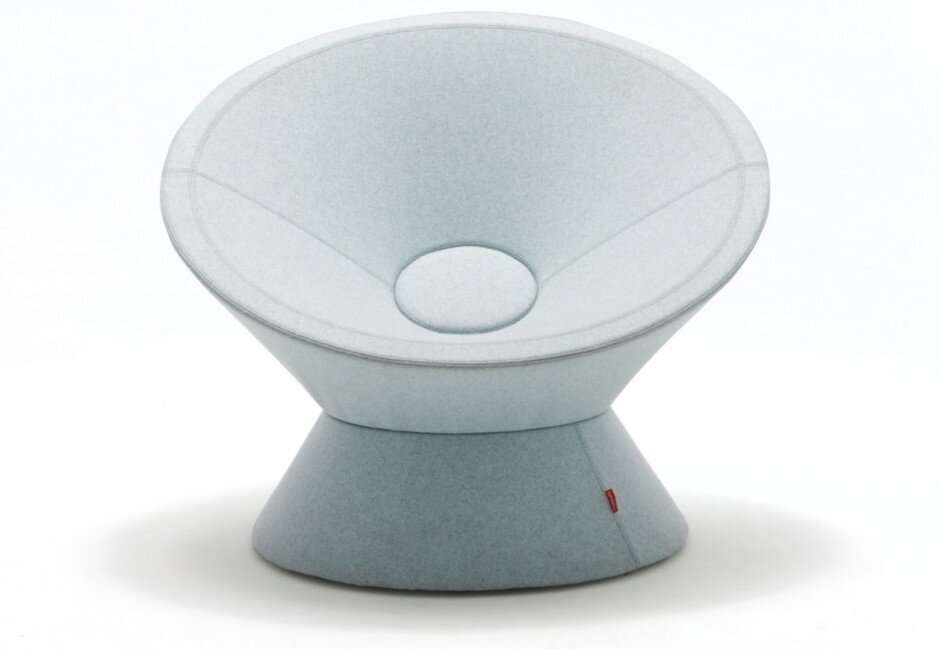 James Irvine’s Blaster Chairs look like the cone of a rocket or a sub woofer, but also look like a nice cushy cocoon. These were shown in the NgispeN stand at Super Brands London as part of the London Design Festival.