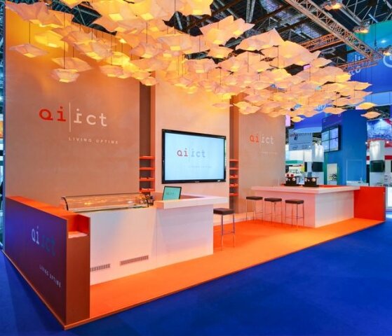 Ever try and define what it is about European exhibits that sets them apart from those in the states? It isn’t the systems approach, there is a lot of custom construction in Europe to be sure. Is it raised floors or the ability to build on site? Maybe it is a bit of them all, but in the case of Wit Design’s stand for QI ICT, it is all in the details (or lack thereof).