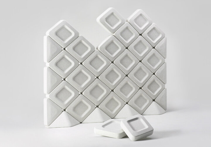 This concept by Arihiro Miyake uses recycled PET bottle fiber to create an acoustic partition system that locks together with magnets.