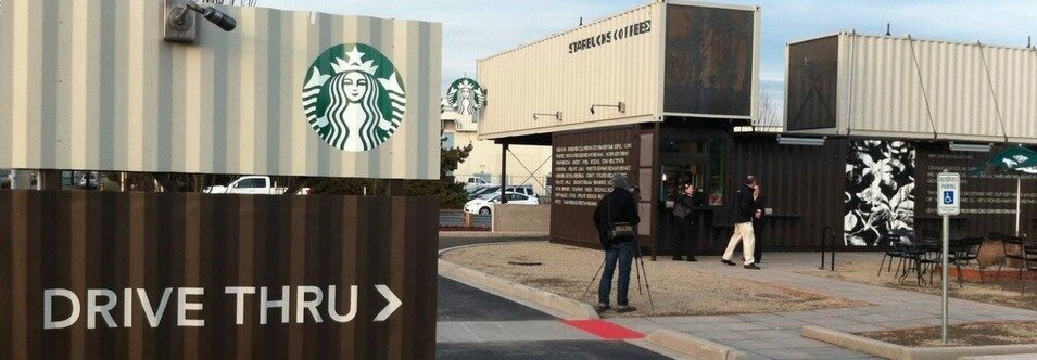 This is another really cool Starbucks, but this time it is a pop-up style made out of several shipping containers. Check out the full story on Rainier Retail. Designed by Starbucks and Rainier provided many of the unique graphic treatments.