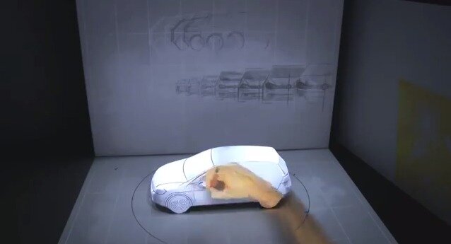 Keep you eyes on the perceived scale of the vehicle as the projected images change. At some points it looks like a little tiny model car even though it is a full size vehicle.