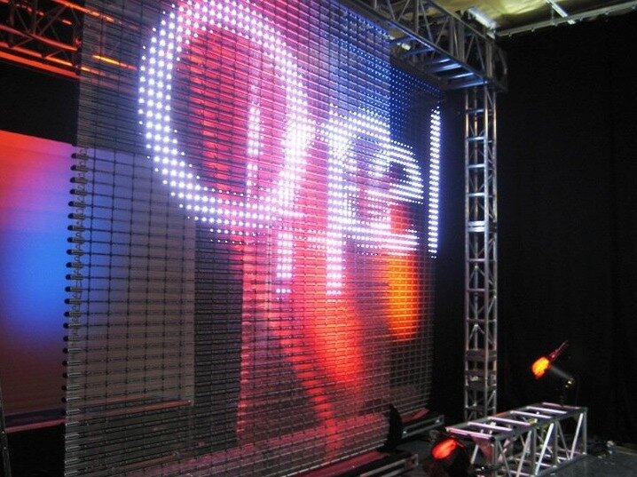 GDK Metal Fabrics has a fascinating product, a flexible metal mesh with embedded LEDs that allow you to play video content outdoors! Called Mediamesh, this “fabric” can be hung inside or outside to create a media screen that is still translucent when not illuminated.