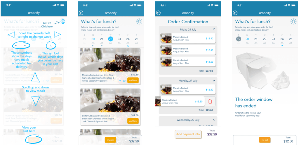 Amenify is an apartment oriented app that connects services like dog walking, cleaning, and chores to apartment complex residents. During the COVID quarantine, Amenify saw an opportunity to expand their offerings to include exclusive lunch delivery for its users who were remote working in their apartments. The project included two parts. The first was developing the UX and UI of the app to accommodate the new offering. This new look and feel then also worked into v2 of the Amenify app. The second portion was to develop print and social content to introduce and entice the users to take advantage of the new lunch delivery service.