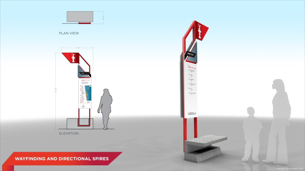 Proposal for signage, wayfinding, and iconic structures for America’s Cup Park at the 34th America’s Cup. Structures were required to be temporary and could not permanently alter the site conditions. In addition, materials had to withstand the harsh conditions of the San Francisco Bay yet still follow a stringent sustainability plan. The proposal included up-cycling many vinyl signage items into branded merchandise such as messenger and tote bags.