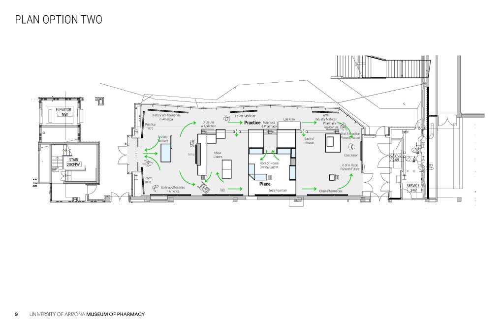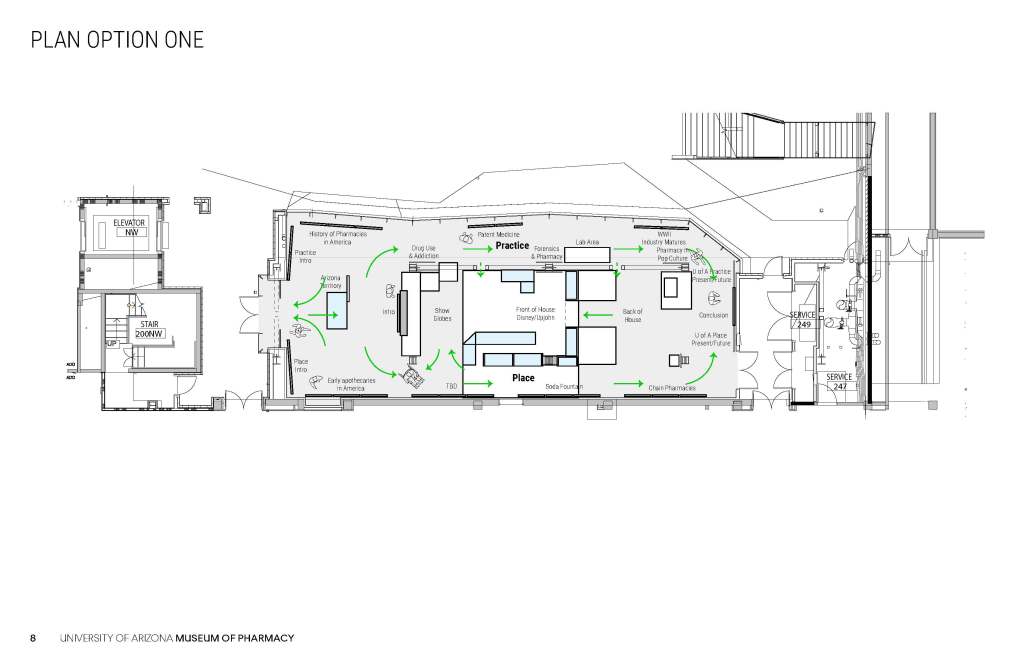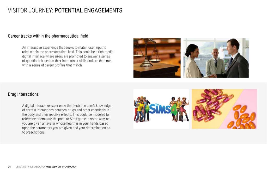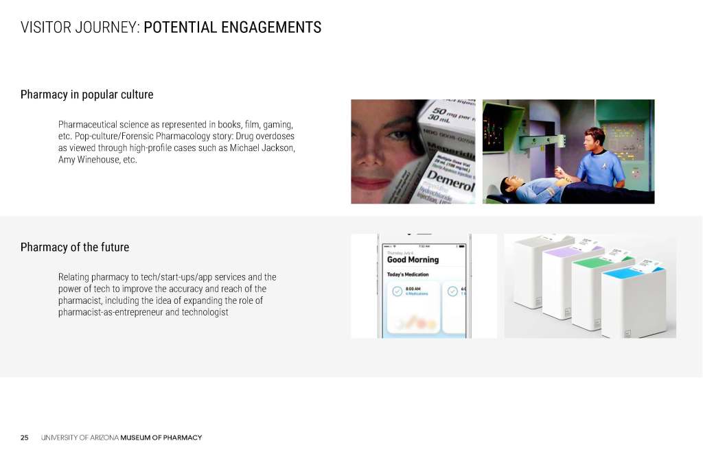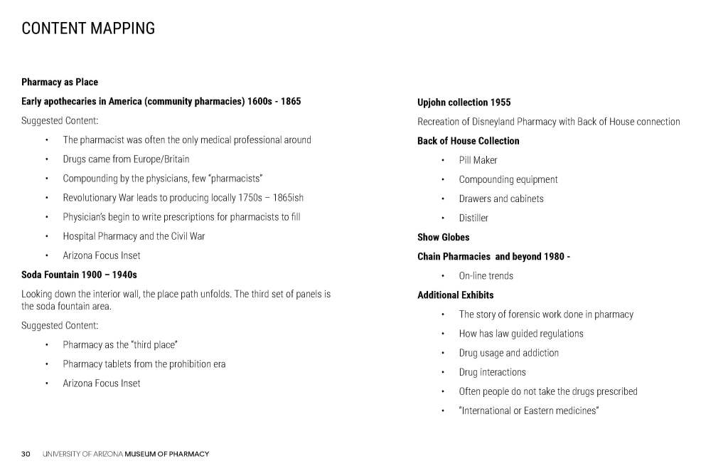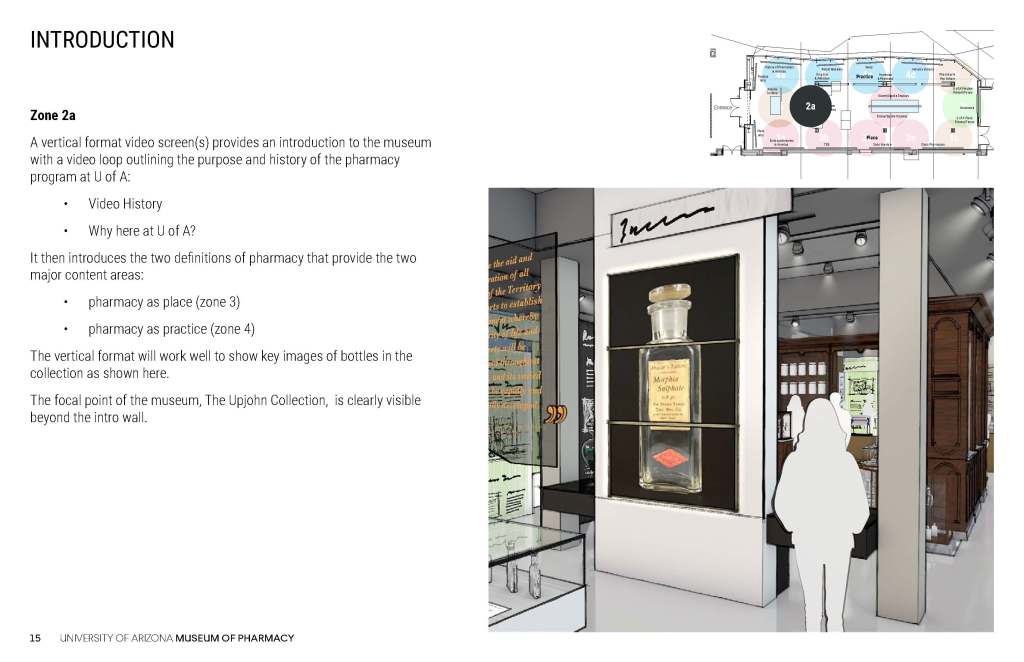 These concepts for the Coit Museum of Pharmacy were developed in conjunction with the University of Arizona Department of Pharmacy, the major donor, and the content producer who would develop the museum digital content.