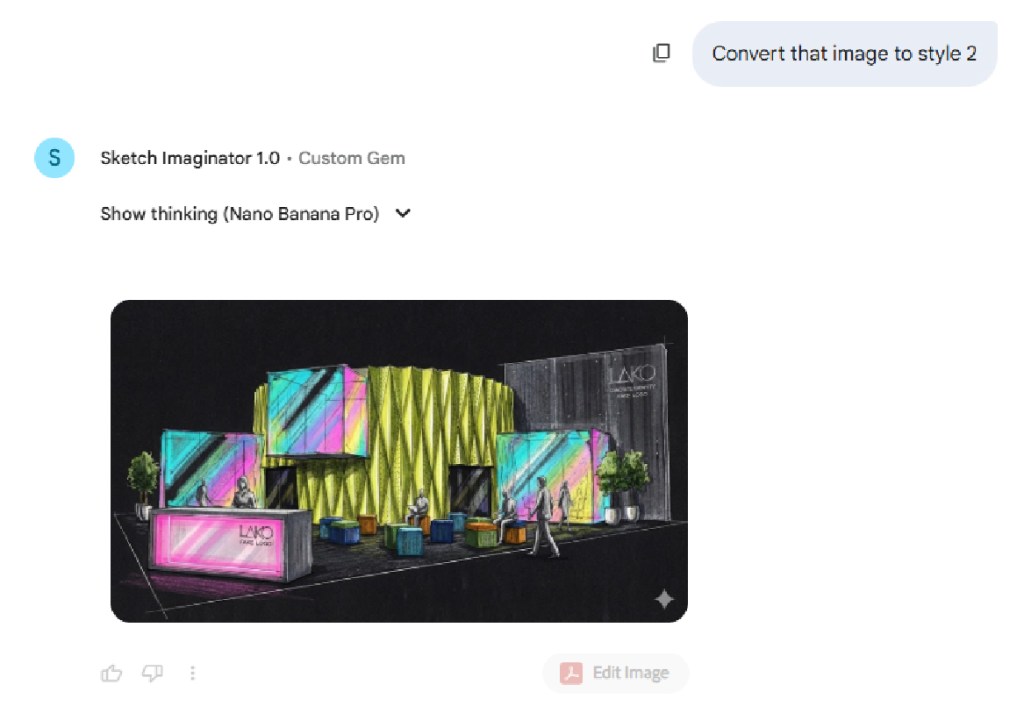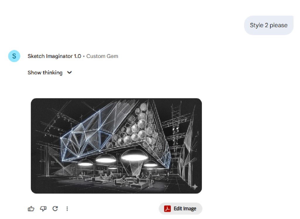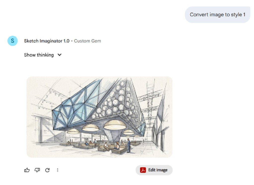 The Sketch Imaginator Google Gem allows the user to use the following to generate a sketch in Nano Banana: